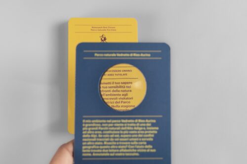 Bubo Bubo is a cooperative game for schools designed to explore and discover the nature parks in an engaging and thorough way, developed in collaboration with the graphic design studio Claudia Polizzi. Guided by Bubo Bubo (the Eurasian eagle-owl), children must uncover secret messages hidden among the panels. To reveal them, teams must observe carefully, answer questions, and above all, collaborate with each other.