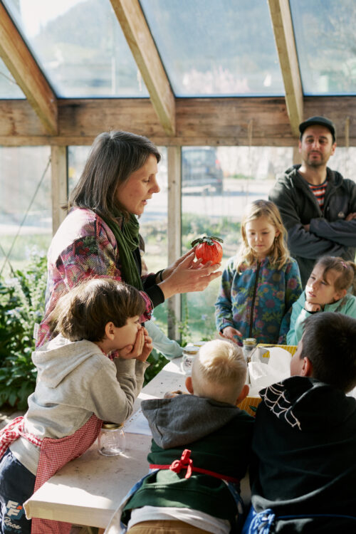 Im Schuljahr 2023/2024 arbeitete Maria Walcher mit BAU im Rahmen des Projekts Caldera Paradullis zusammen. Gemeinsam mit den zweiten Klassen der Grundschule Algund entwickelte sie eineWorkshop-Serie zur Materialität, bei dem die Kinder mit Keramik arbeiteten. Aus der Beobachtung von Tomaten und ihren vielfältigen Formen entstanden Schalen in Tomatenform, während Tomatenscheiben zu lebendigen, farbenfrohen Tellern wurden.