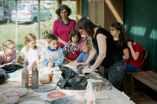 Nel corso dell’anno scolastico 2023/2024, Maria Walcher ha collaborato con BAU al progetto Caldera Paradullis. Insieme alle classi seconde della scuola primaria di Lagundo, ha sviluppato un ciclo di laboratori dedicati alla materialità, invitando bambine e bambini a lavorare con la ceramica. Attraverso l’osservazione dei pomodori e delle loro forme molteplici, sono nate ciotole ispirate a questo frutto, mentre le fette di pomodoro si sono trasformate in piatti vivaci e colorati.