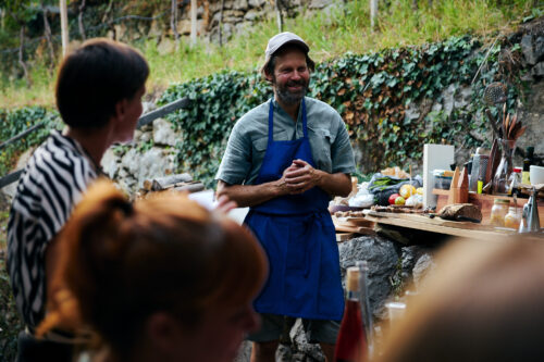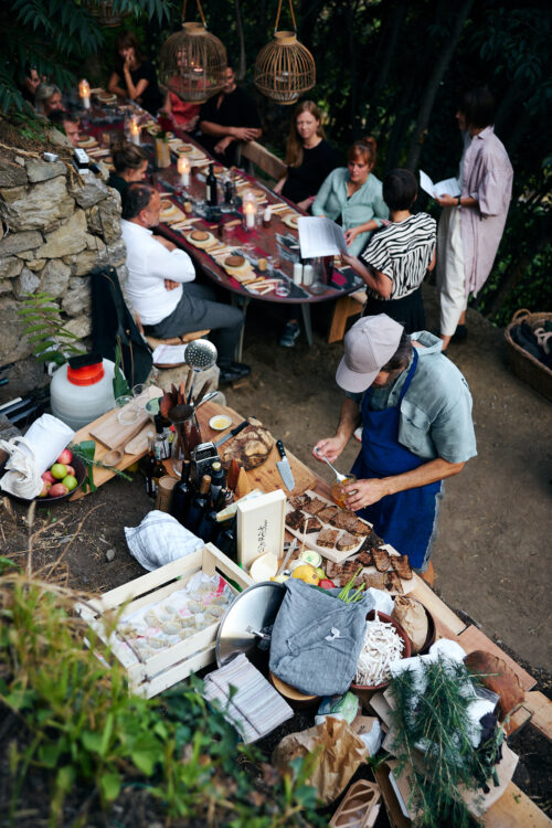 In 2021, together with BAU, Martino Gamper orchestrated a six-course dinner, carving every element from wood: furniture, cutlery, glasses, and plates, and even incorporating wood into the menu. During the BAAM Dinners, on a late-summer evening suspended among the vineyards of Lagundo, people from the worlds of economics, culture and tourism engaged in conversations about the synergies between art, creativity, and the economy.